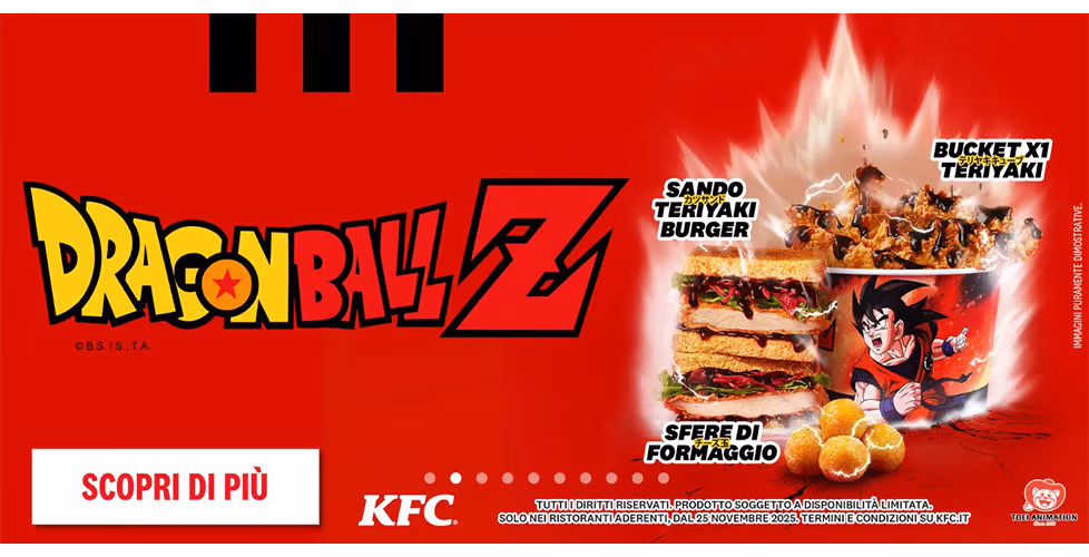 KFC ha lanciato in Italia un menù esclusivo dedicato a Dragon Ball Z, che trasforma il celebre pollo fritto in un’esperienza ispirata all’universo di Goku, Vegeta e gli Z-Fighter. La limited edition è disponibile nei ristoranti italiani dal 25 novembre e porta sapori giapponesi e creatività anime direttamente nel tuo piatto.