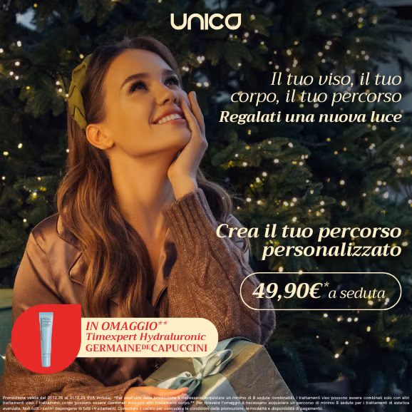 L'aria profuma di festa, i ritmi rallentano, e la pelle — tra freddo e luci scintillanti — cerca calore, cura e momenti dedicati solo a te. Da Unico, puoi iniziare i tuoi percorsi di epilazione laser e regalarti trattamenti che rigenerano, valorizzano e accompagnano con dolcezza la fine dell'anno Epilazione Laser tutte le zone a 35€ a seduta à fino a 10 sedute di epilazione laser in OMAGGIO